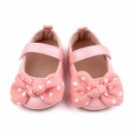 Pantofiori roz sidefat cu fundita 9-12 luni marimea 20