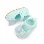 Pantofiori pentru fetite, cu o funda aplicata in fata, se inchid cu barete cu arici intr-o parte.