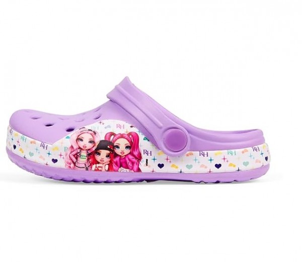 Papuci cu bareta pentru fete cu banda lila cu imprimeu cu Stella, Ruby si Bella, protagonistele seriei animate Rainbow High.