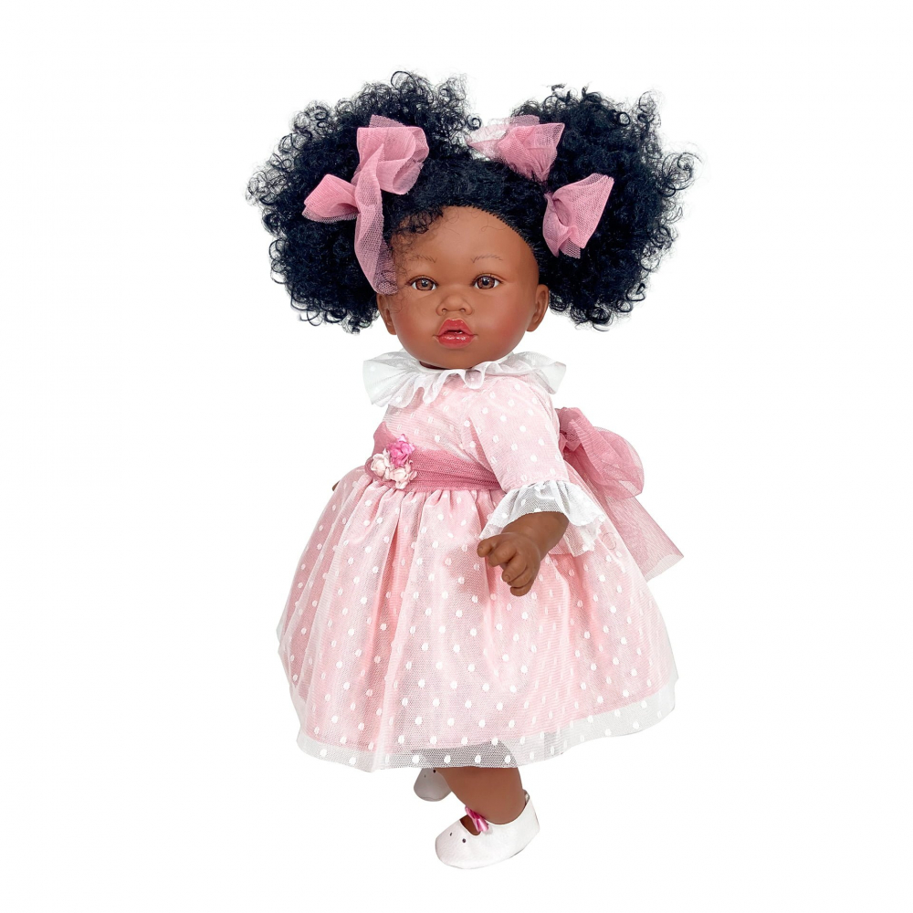 Papusa Celia cu rochita roz este un clasic al brandului Nines d’Onil, este una dintre cele mai frumoase si reprezentative.