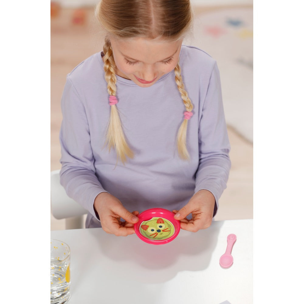 Cunoscuta deja din seria animata BABY born, ce poate fi vazuta pe YouTube si Toggo, acum Emma se afla in tinuta ei noua, cu 10 accesorii, chiar la tine acasa. De asemenea, are si farfuria ei magica: daca pui apa pe insertia din farfurie, apa magica face sa apara feluri de mancare delicioase, facand jocul de hranire si mai interesant.