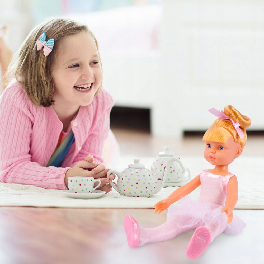 * Frumoasa rochita de balet, intr-o nuanta de roz deschis, detaliile atent lucrate si trasaturile faciale fermecatoare vor face ca fiecare fatita sa se indragosteasca de ea la prima vedere!