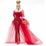 Papusa Barbie blonda cu rochie de bal rosie Barbie Signature Aniversare 80 de ani