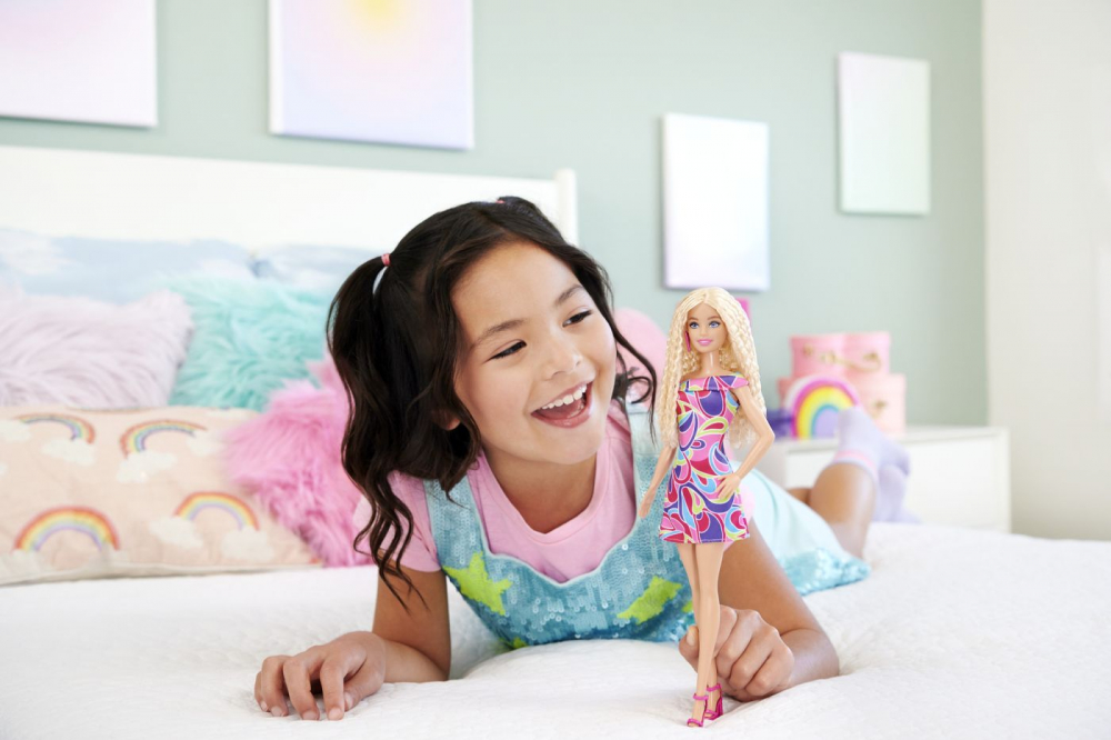 Papusa Barbie are parul lung blond ondulat pentru a celebra aspectul recunoscut!