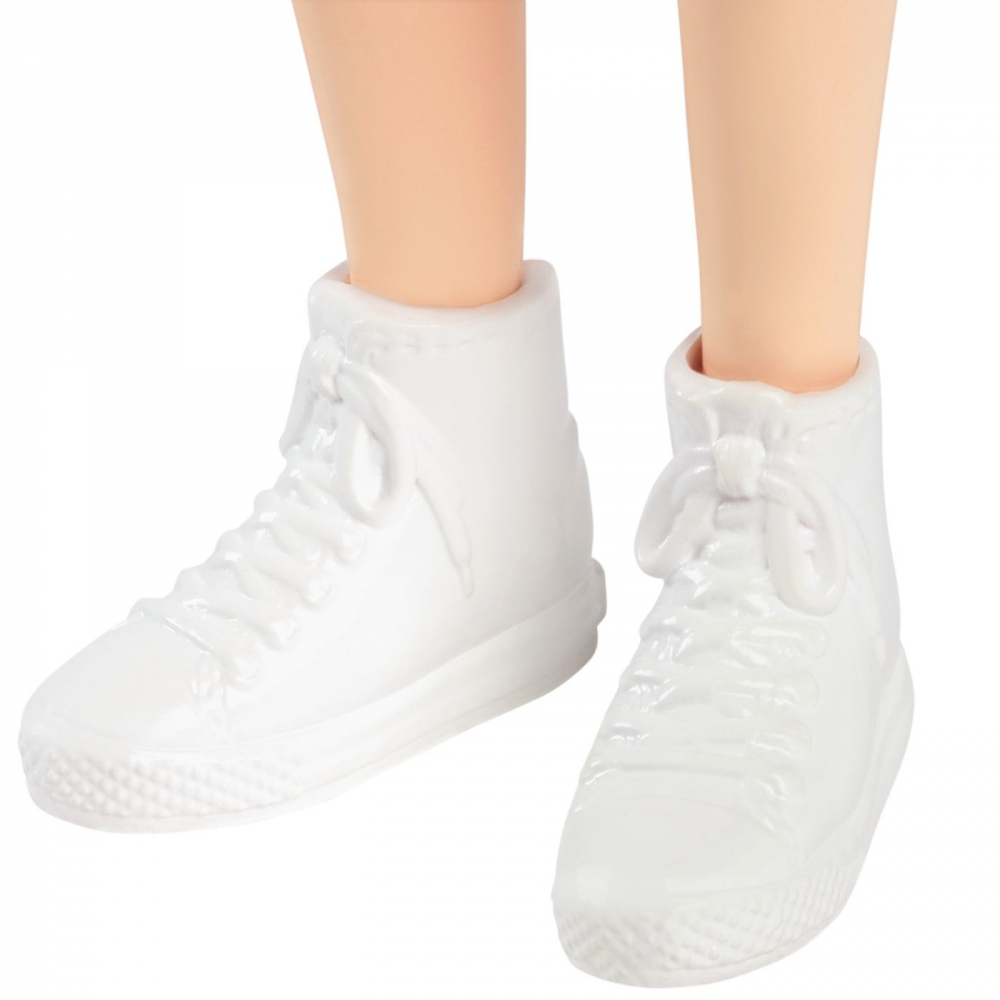 Aceasta papusa Barbie din gama Fashionistas are parul roscat, prins in coada. Adidasii albi complementeaza perfect aspectul sau.