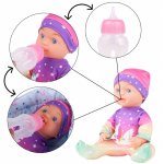 Papusa bebe care bea din biberon si face pipi la olita, cu suzeta si cosulet de transport incluse, 30 cm, Blue