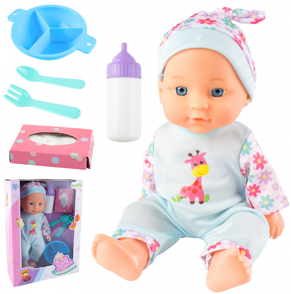 Papusa bebe pentru copii Malplay, cu detalii realiste, include set de accesorii pentru hranire, inaltime 29 cm