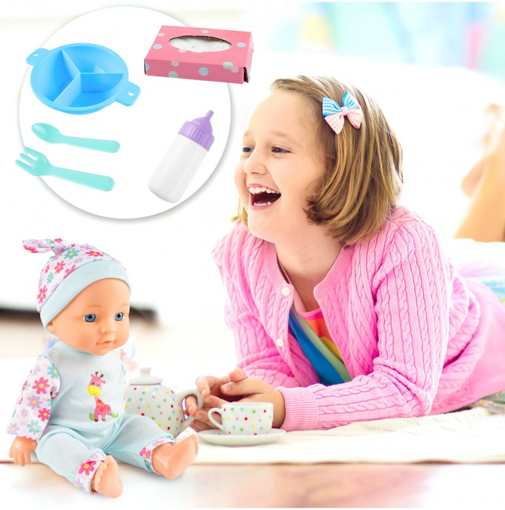 Contine tot ce e necesar pentru a hrani si a ingriji o papusa adorabila, gata sa-i ofere micutului tau ore intregi de distractie si invatare.