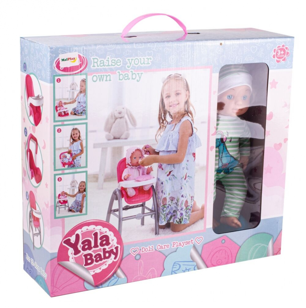 Papusa Bebe Yala 30 cm, care Papa in Scaunelul de masa, Bea din biberon si face pipi la Olita, cu accesorii de hranire incluse