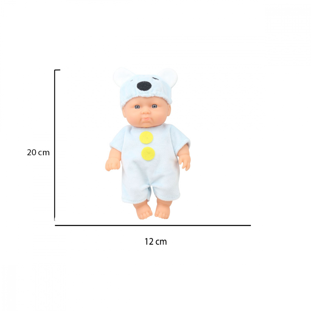 - Este imbracata in salopeta albastra si accesorizata cu caciulita in ton,cu imprimeu de soricel.