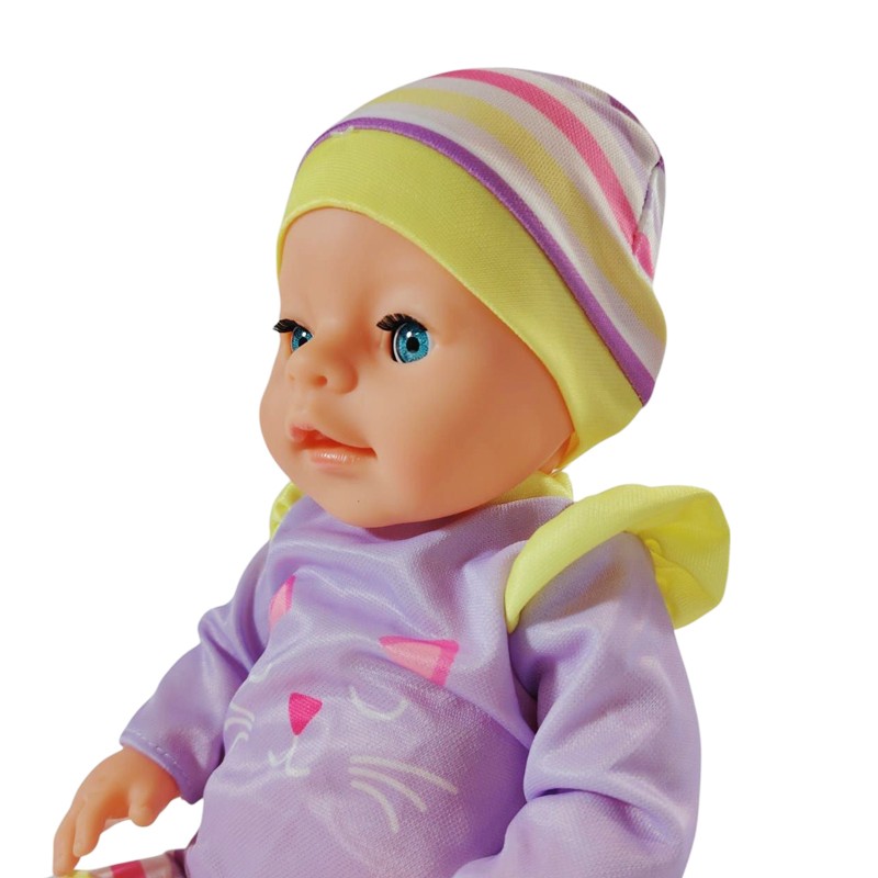 Papusa bebelus, 40 cm, diverse accesorii incluse, face pipi, aspect realist, 3 ani+