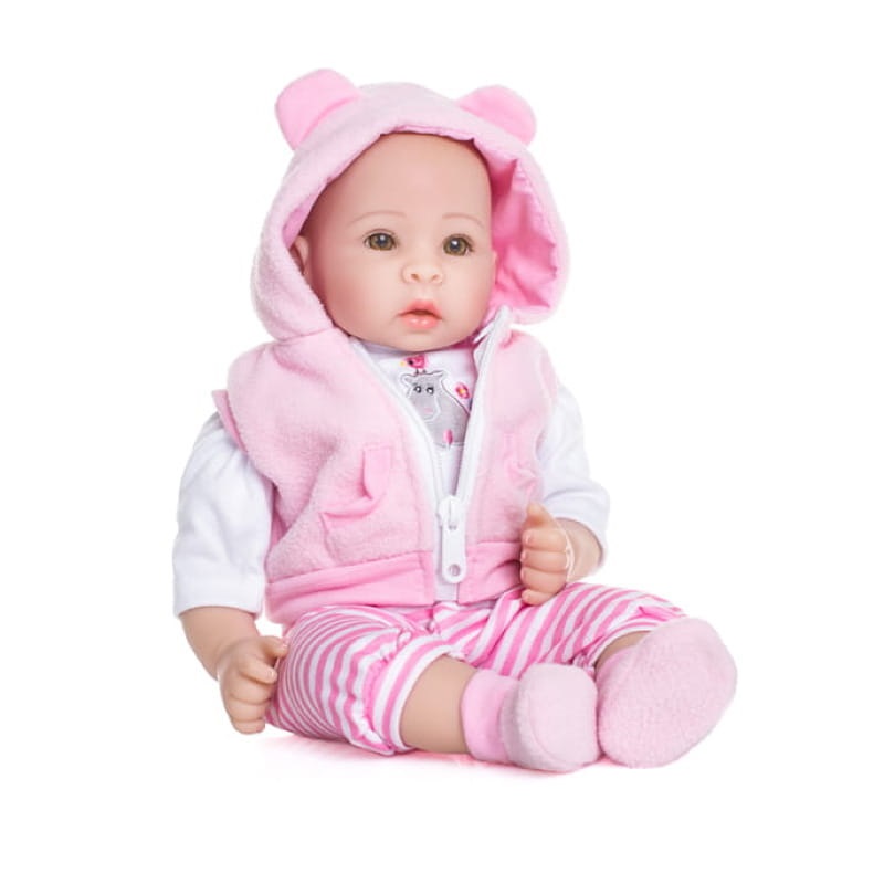 Cu o atentie deosebita la detalii, ea imita perfect un bebelus, avand trasaturi faciale delicate, ochi mari, caprui, si o expresie curioasa.