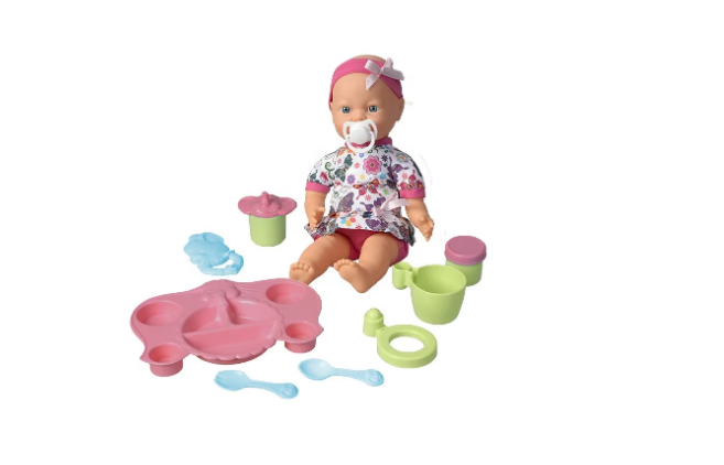 Nu numai ca este o papusa adorabila de 35 cm, dar scoate si sunete realiste si vine cu alimente de jucarie. Acum e realist!