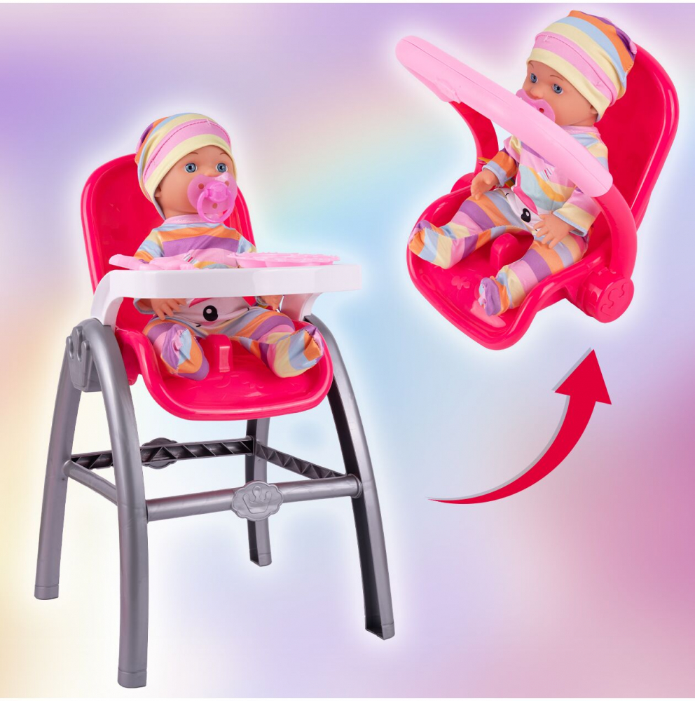 * Scaunul inalt 2 in 1 este un plus grozav care va ajuta o 'mama mica' sa aiba grija de copilul ei.