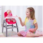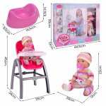 Papusa bebelus interactiv cu scaun si accesorii de ingrijire