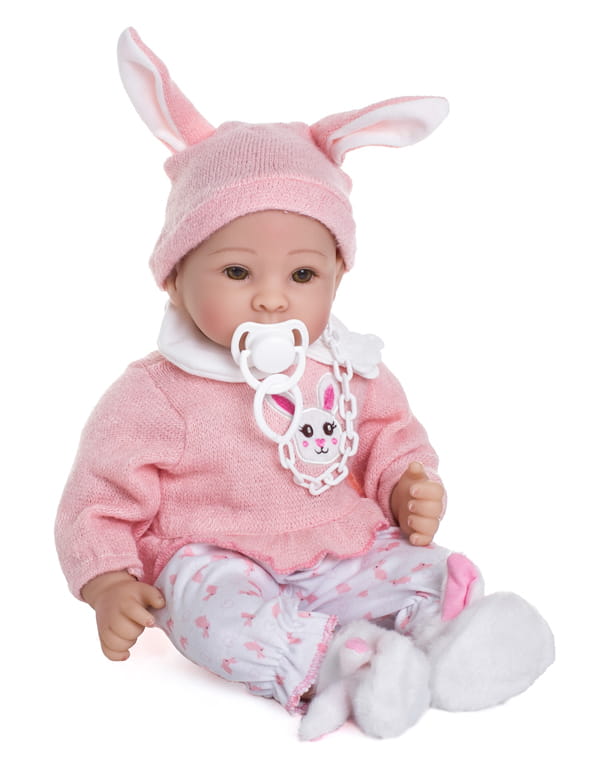 Cu o atentie deosebita la detalii, ea imita perfect un bebelus, avand trasaturi faciale delicate, ochi mari, caprui, si o expresie curioasa.
