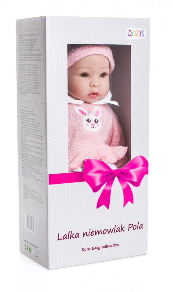 Frumoasa papusa Pola , cu fata ei vesela, arata exact ca un bebelus adevarat.Aceasta papusa realista, cu un aspect dulce si expresiv, este pregatita pentru joaca in orice anotimp.