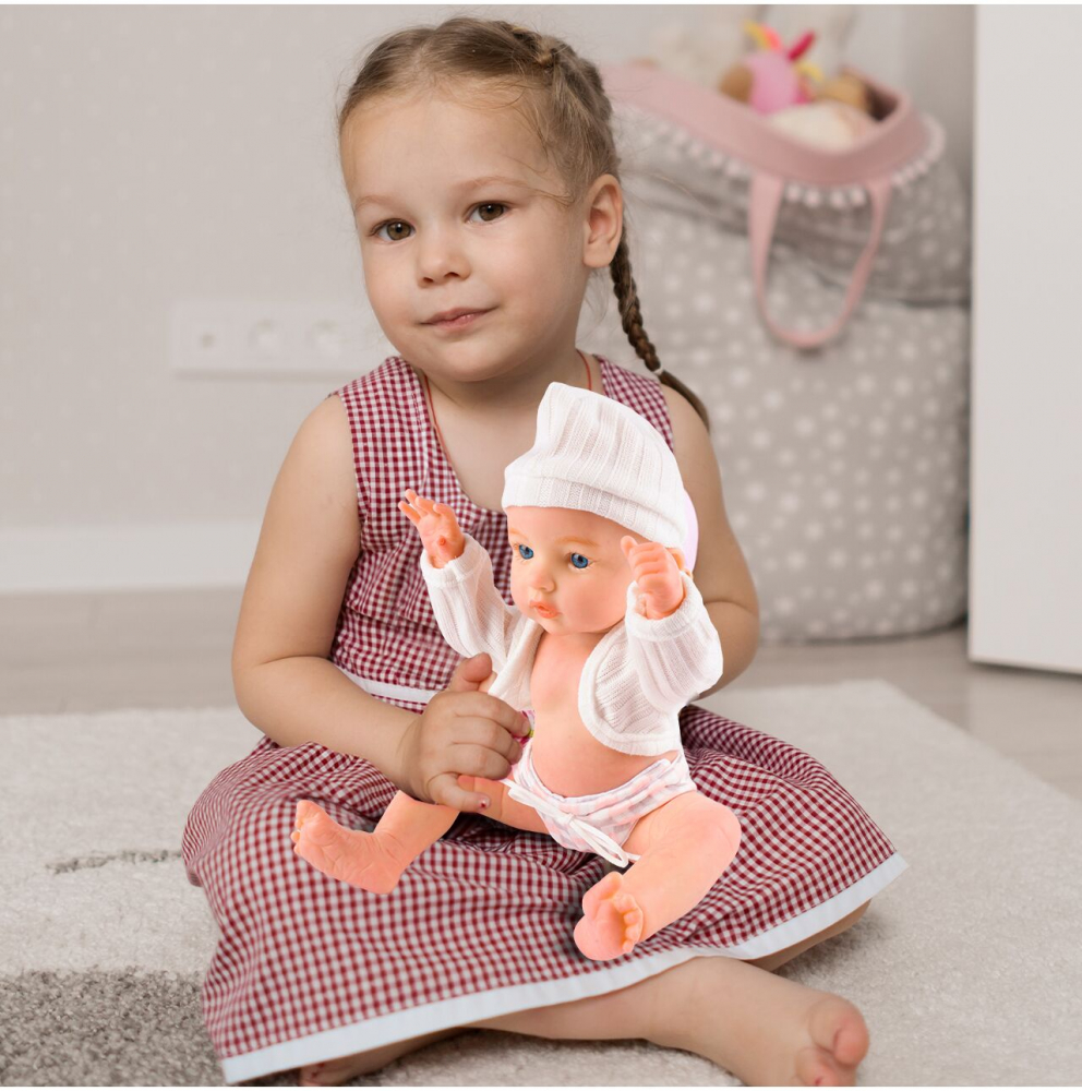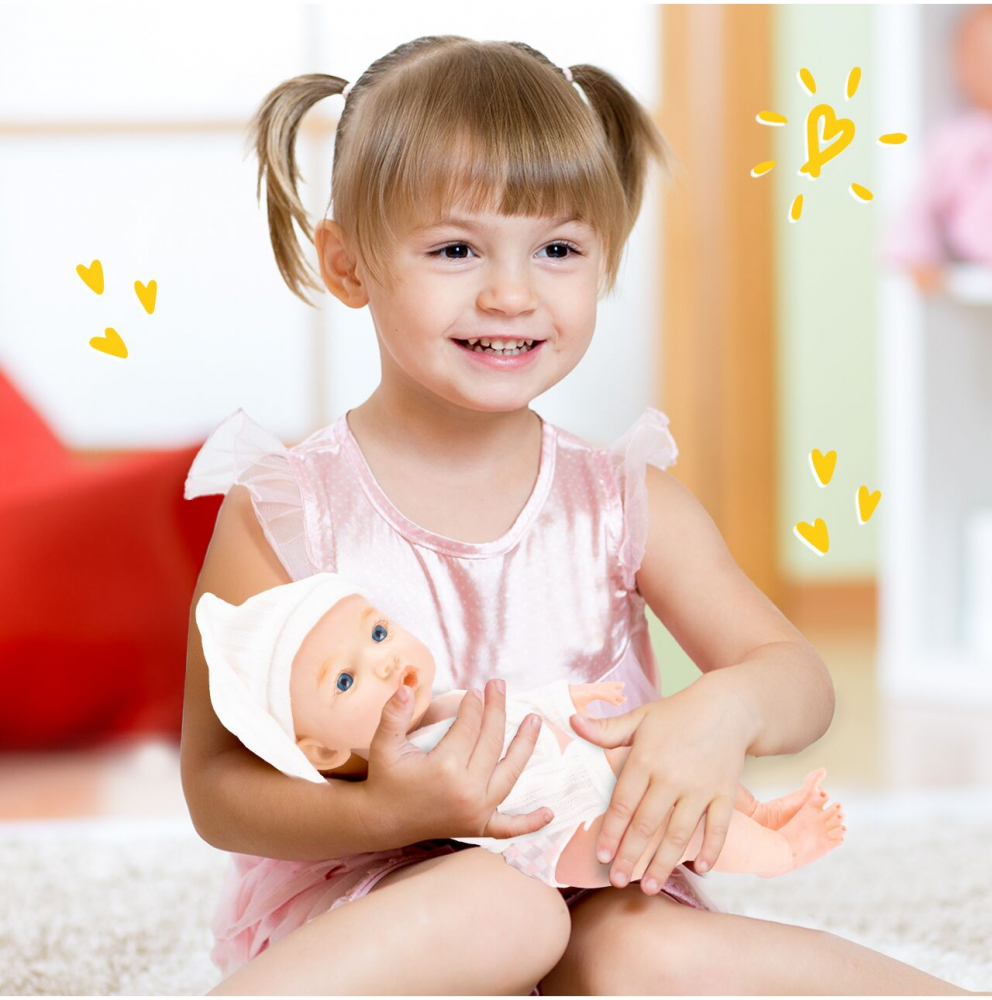 Papusa Oliwia nu este doar pentru joaca in camera. O puteti lua si la baie! Materialul sau este rezistent la apa, permitandu-i copilului sa o spele impreuna cu el.
