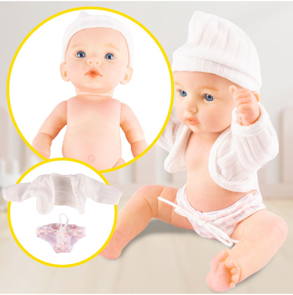 Aspect Realist: Ochi mari, albastri, trasaturi faciale delicate si corp detaliat, care seamana cu un bebelus adevarat (inclusiv detalii fine).