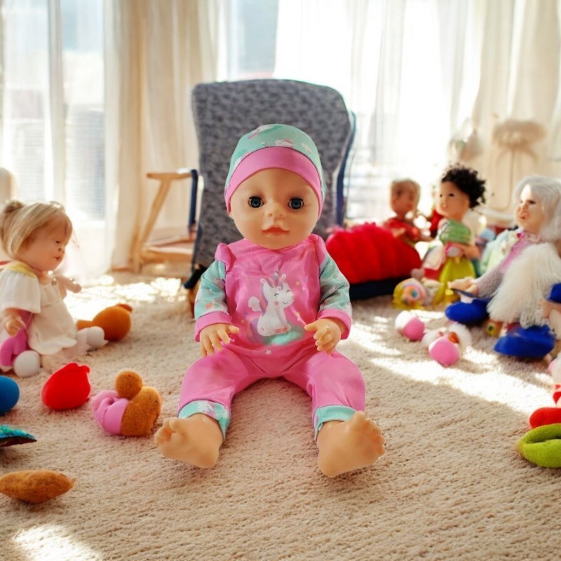Papusa este imbracata in haine viu colorate, atragatoare si schimbabile, ceea ce ii permite copilului sa participe la jocuri de rol, imbracand si dezbracand papusa. Dupa ce ii este oferit biberonul sau suzeta cu apa, papusa are o functie speciala care ii permite sa "faca pipi". Aceasta adauga o nota de autenticitate si este excelenta pentru dezvoltarea abilitatilor de ingrijire si de responsabilitate.