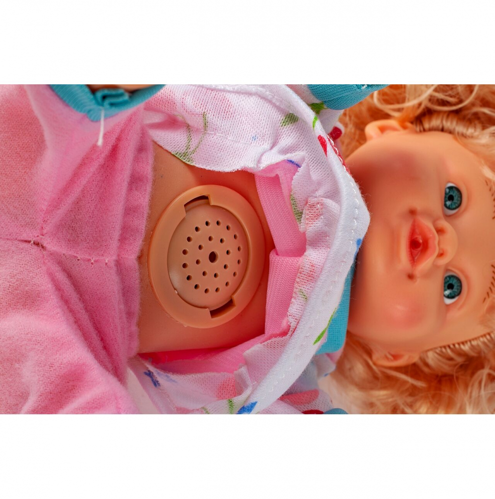 O papusica draguta cu bucle blonde, va incanta cu siguranta orice fetita care viseaza sa aiba grija de propriul copil.