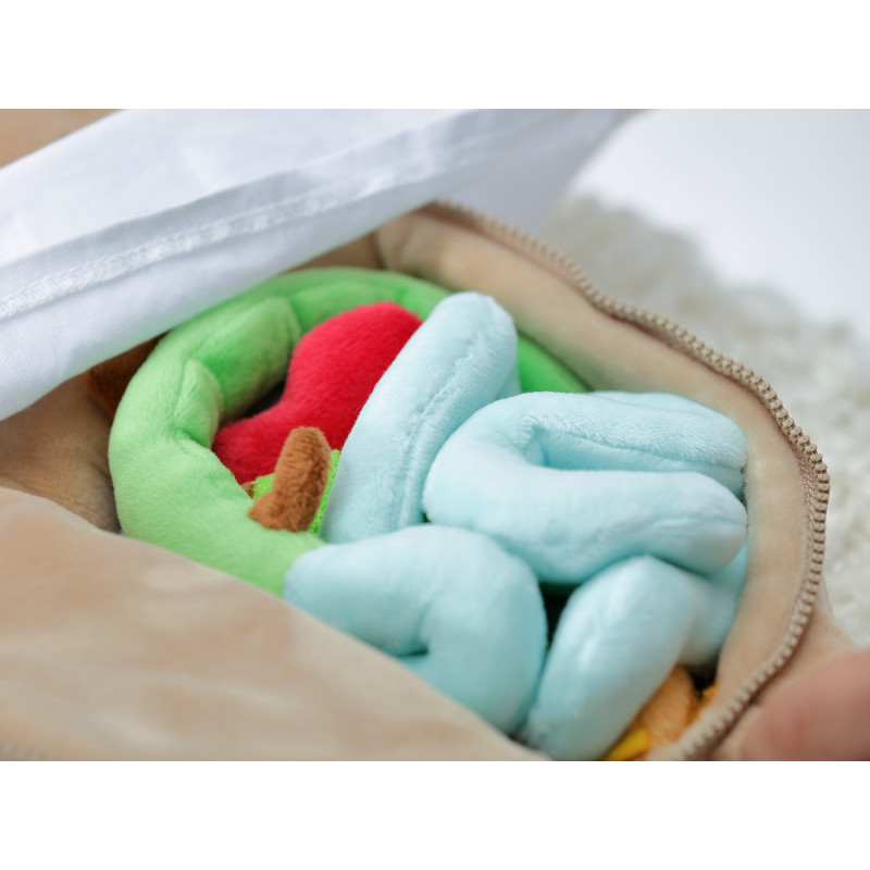 • Burtica sa se deschide usor cu un fermoar, dezvaluind organe colorate