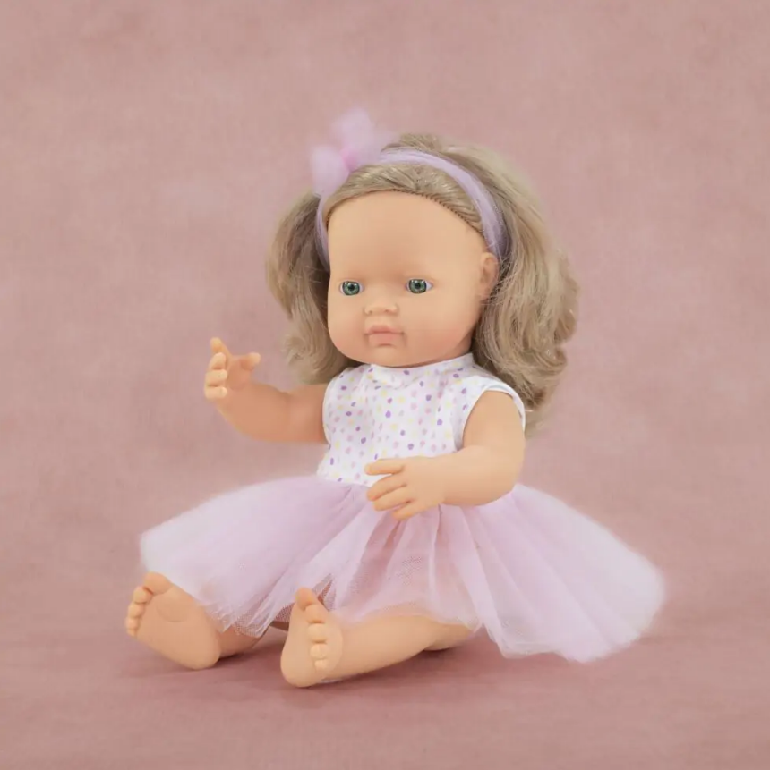 Papusa fetita caucazian blond inchis 38 cm in rochita corp parfumat colectia My Friends and Me