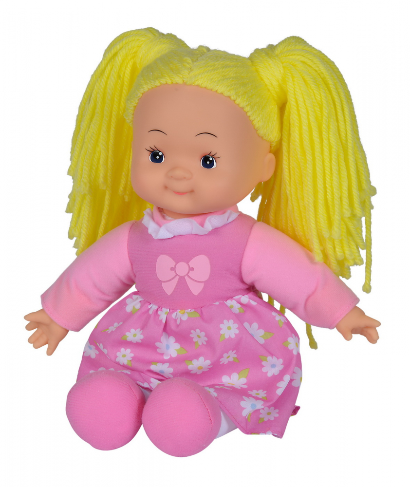 Papusa Flower Dolly din material textil cu parul galben 38 cm