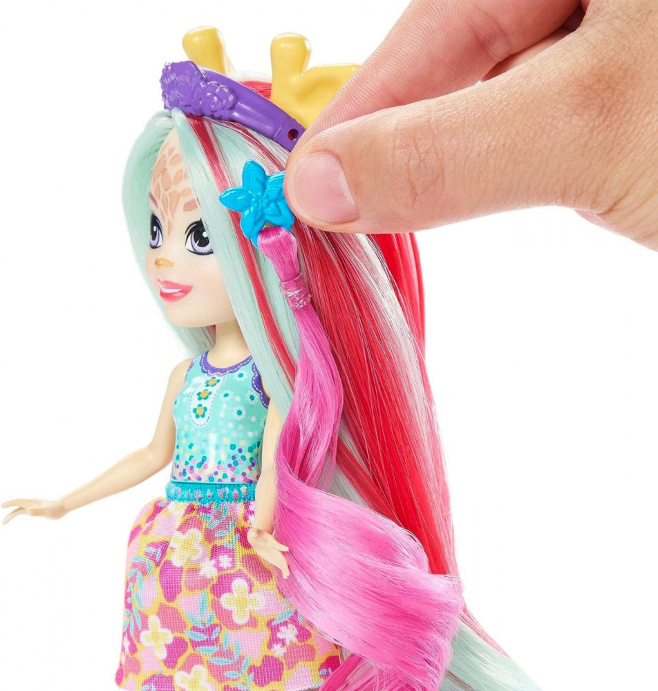 Aceasta colectie de papusi Enchantimals Deluxe Hair celebreaza un grup de prieteni adorabili care impartasesc o legatura speciala cu cei mai buni prieteni animale.