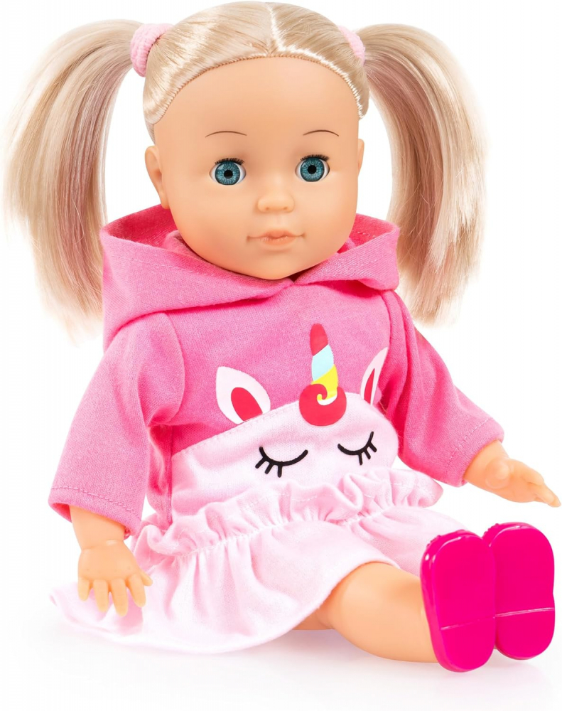 Papusa interactiva Bayer Charlene Little Love 33 cm cu par blond,accesorii pentru coafat,rochita roz si balerini asortati,sunete vesele,chicote de ras si pupici