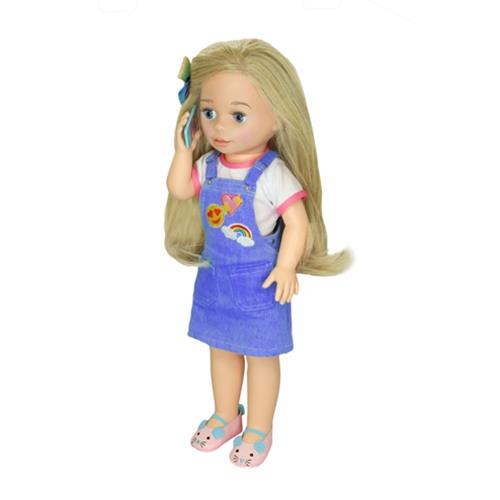 Contine: o papusa, un telefon de jucarie pentru papusa si unul pentru tine, 1 pereche papucei pentru papusa, o clama pentru papusa.