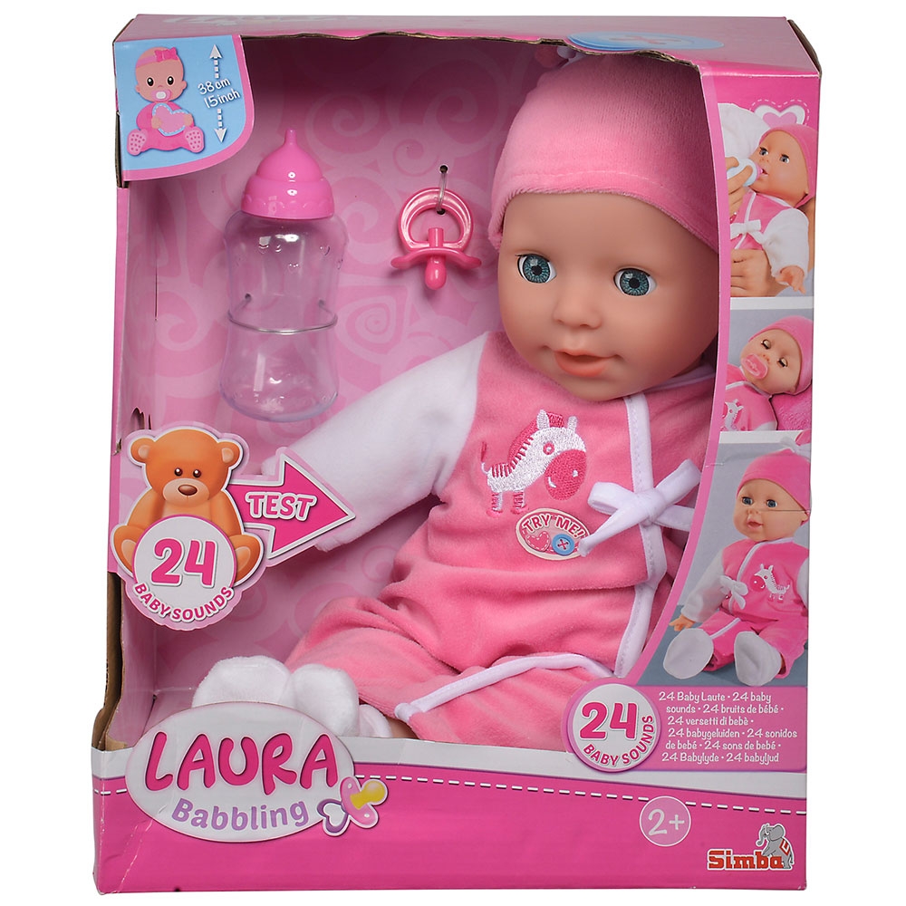 Papusa interactiva Simba Laura Baby Talk 38 cm cu biberon si suzeta