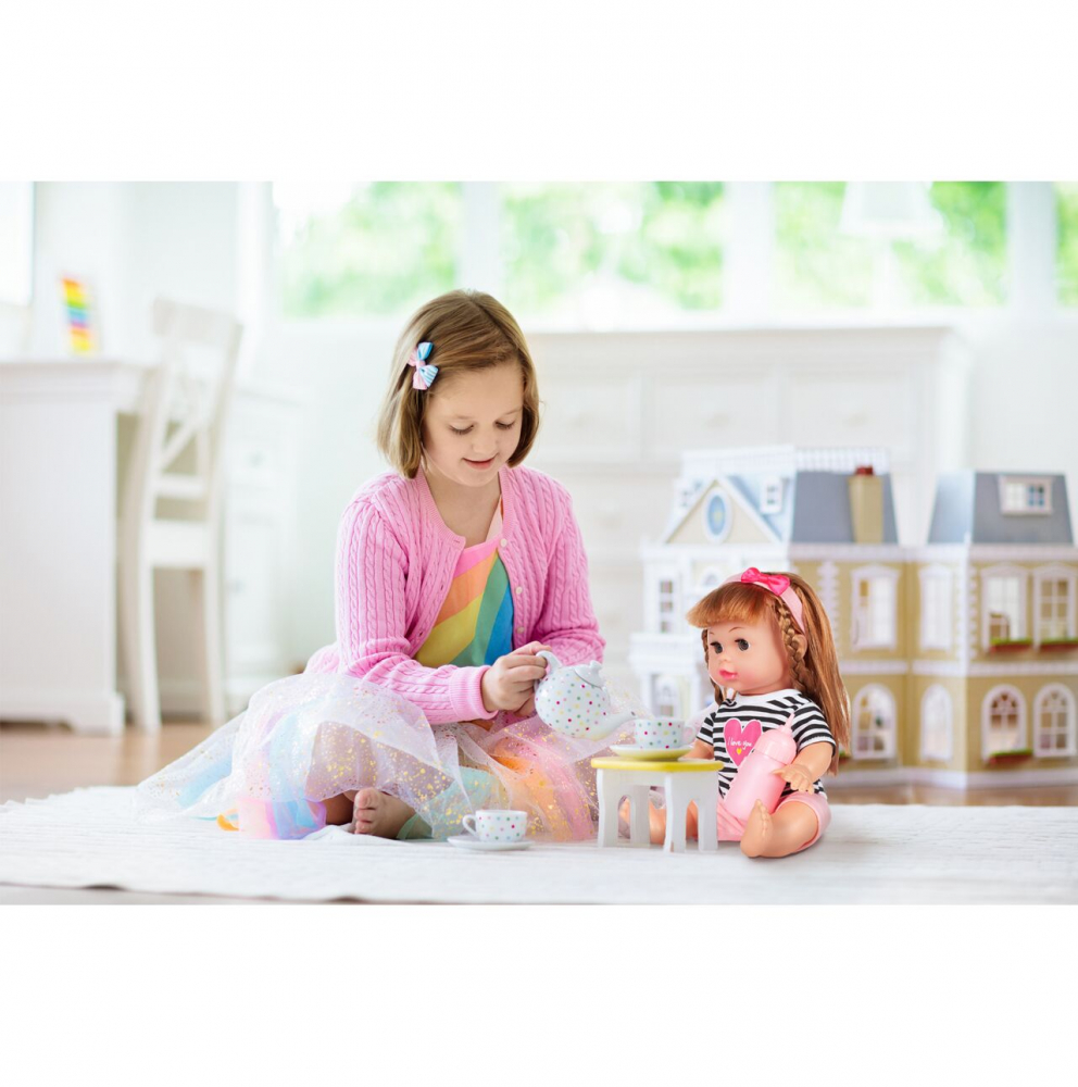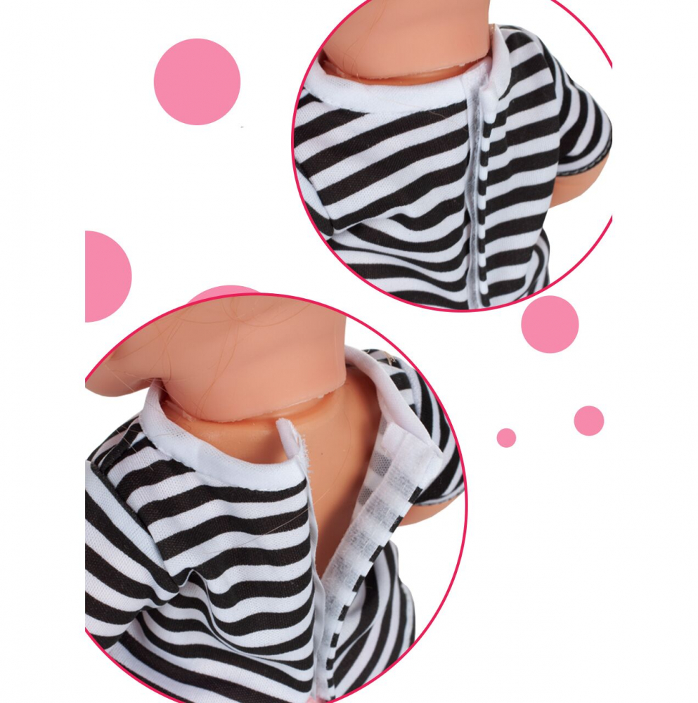 Capul papusii este fabricat din cauciuc moale, aceasta papusa poate bea apa si pipi. Hainele papusii pot fi indepartate si curatate cu usurinta, ceea ce face extrem de usor sa o pastrati curata.