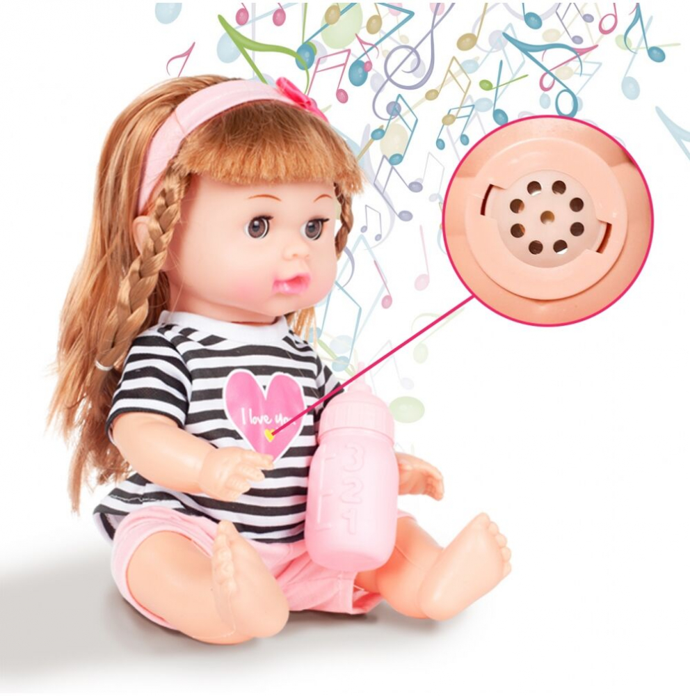 Papusa are un difuzor si poate emite sunete, cum ar fi: -spune tata; -spune mama; -Strigatele -Rade -sughite -Casca -Tuseste -Stranuta