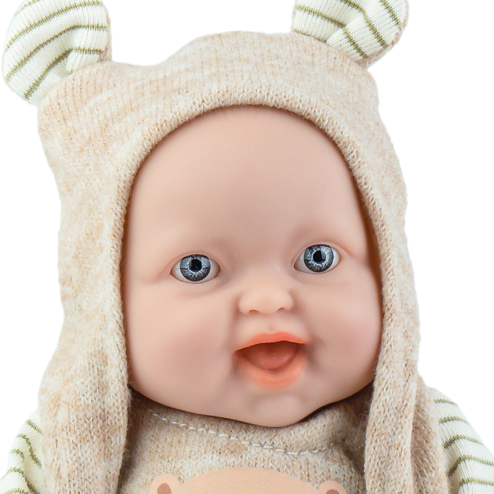 Simpatica papusa este realizata manual, cu detalii realiste fine si ochi atractivi. Designul hainutelor si imprimeul urs transforma micuta papusa intr-un personaj simpatic.