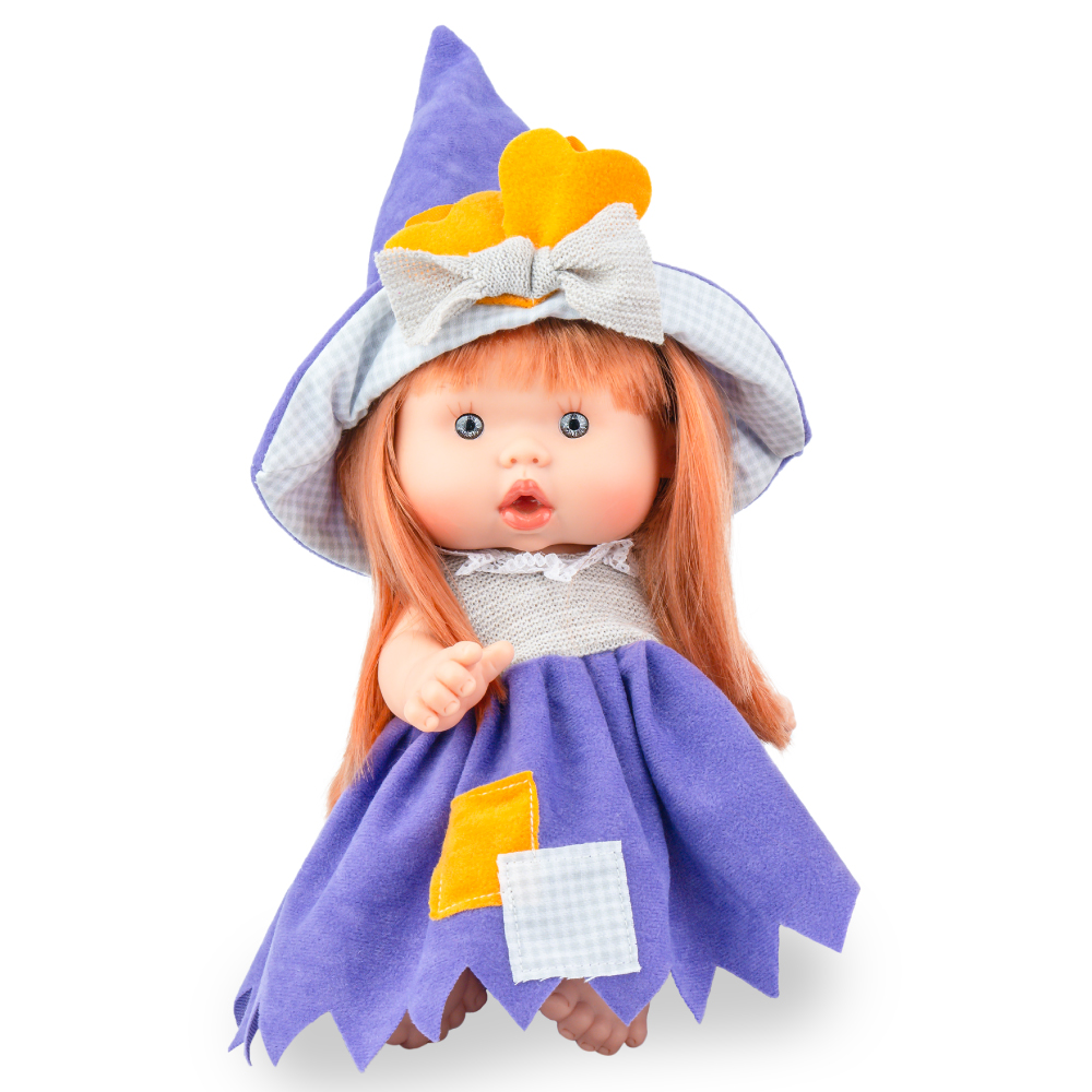 Simpatica papusa imbracata in costum de Vrajitoare este realizata manual, cu detalii realiste fine si ochi atractivi. Hainutele sunt croite cu grija si confectionate din tesaturi de inalta calitate.