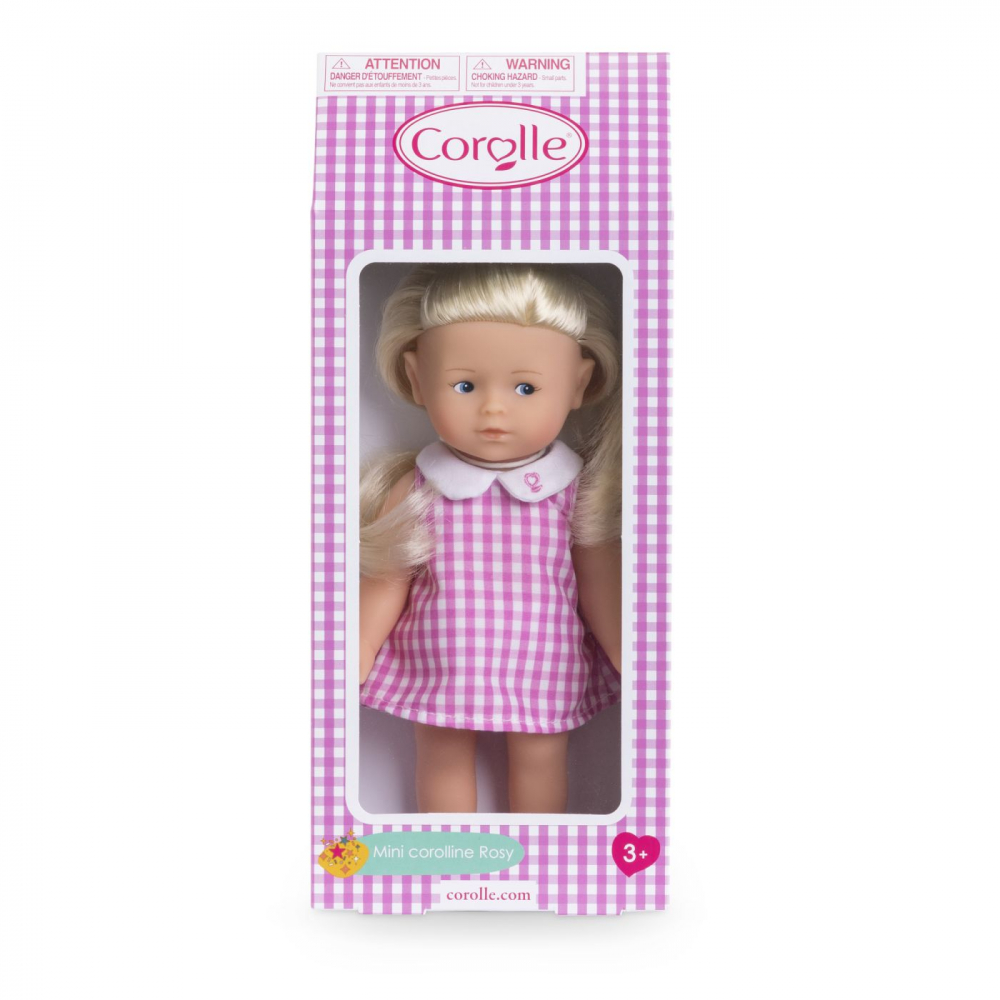 Mini Corolline Rosy este o papusa mica, cu pielea deschisa la culoare, de 20 cm,gata de oferit cadou.
