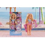 Parul ei este blond si ondulat, iar cerceii roz completeaza acest look de plaja.
