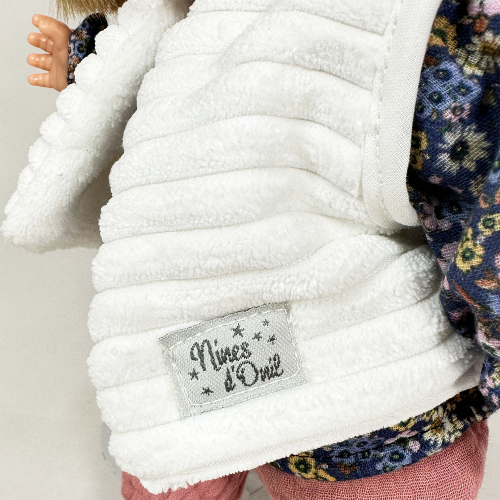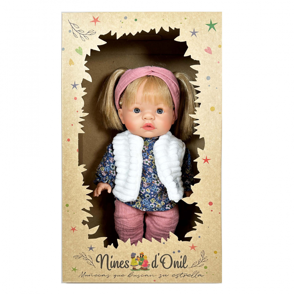 Papusa Nines D’Onil, Joy, cu parul blond, cu vesta alba, cu miros de vanilie, 37 cm