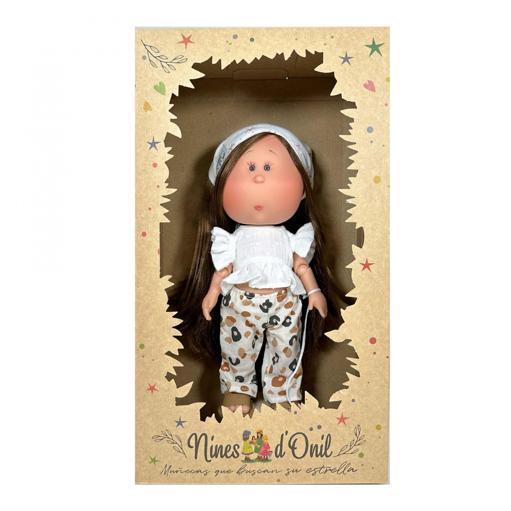 Papusa Nines D’Onil, Mia, cu parul saten drept, cu catel, cu articulatii, cu miros de vanilie, 30 cm