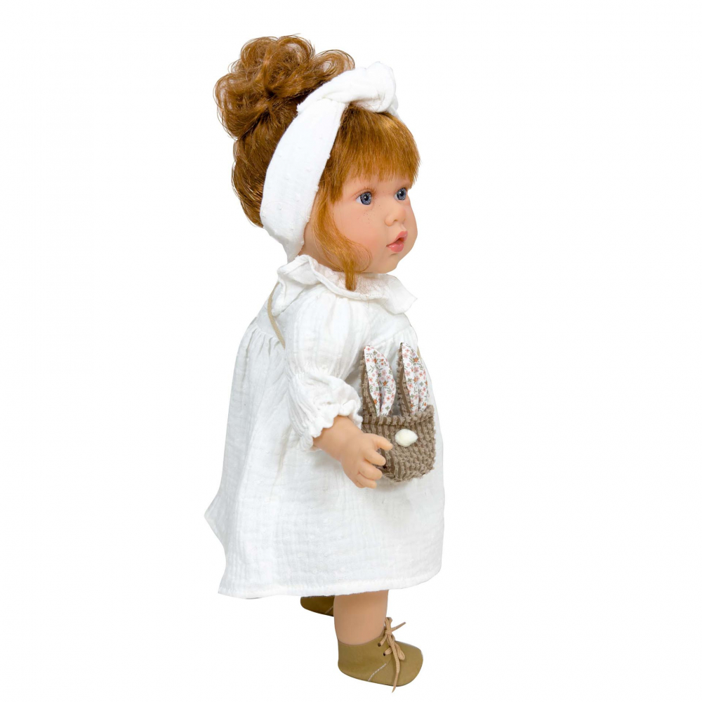Papusa Nines DOnil Susette Plumeti cu parul roscat, sunete, rochie alba cu miros de vanilie 45 cm