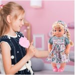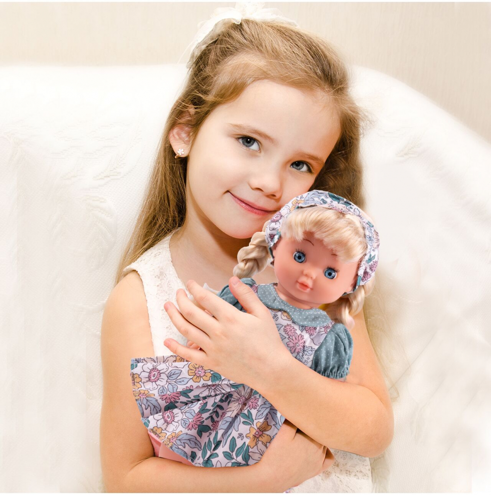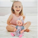 Papusica are un par blond frumos, ochi albastri mari si un zambet dragut, detalii ce vor incanta cu siguranta orice copilas;