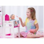 * In plus, setul include o perie moale potrivita pentru coafarea parului papusii, care permite o ingrijire si mai buna a ei si dezvolta creativitatea copilului.