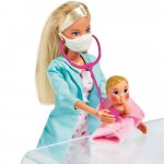 - Papusa Steffi pediatru, cu masca de fata si multe accesorii, include un bebelus cu febra