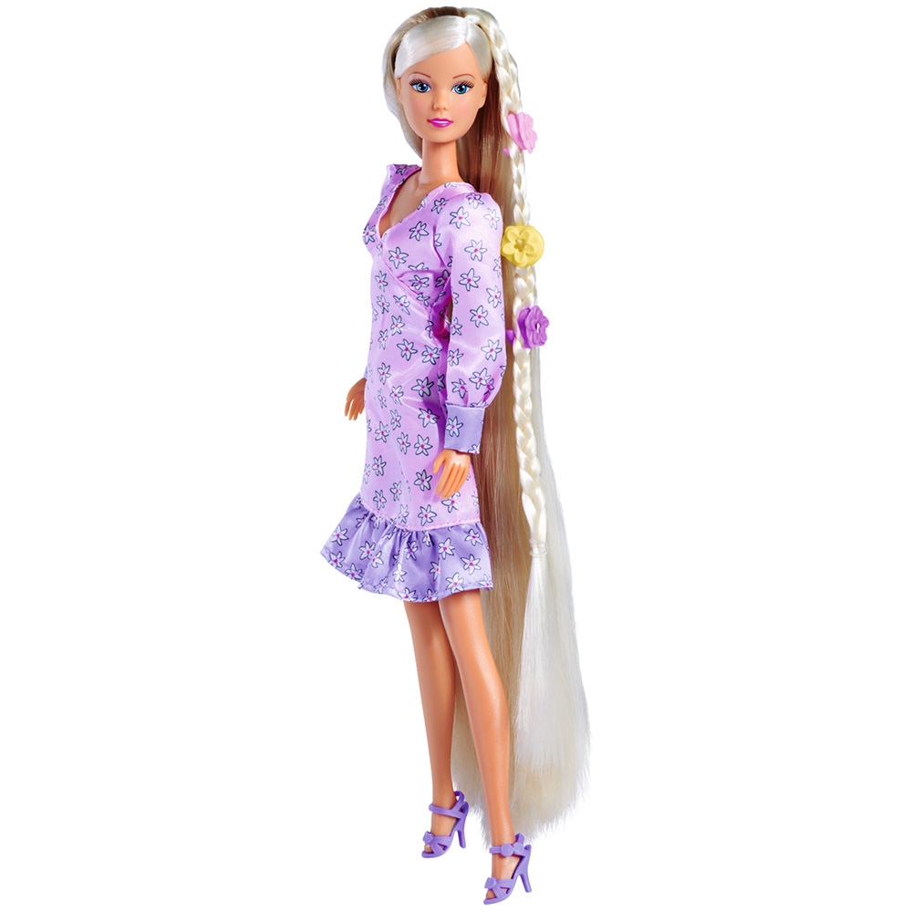 - Papusa Steffi are un par foarte lung si deosebit de frumos care ii ajunge pana la picioare. El poate fi pieptanat, ingrijit si aranjat de catre copii