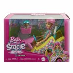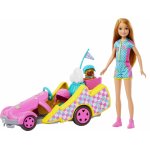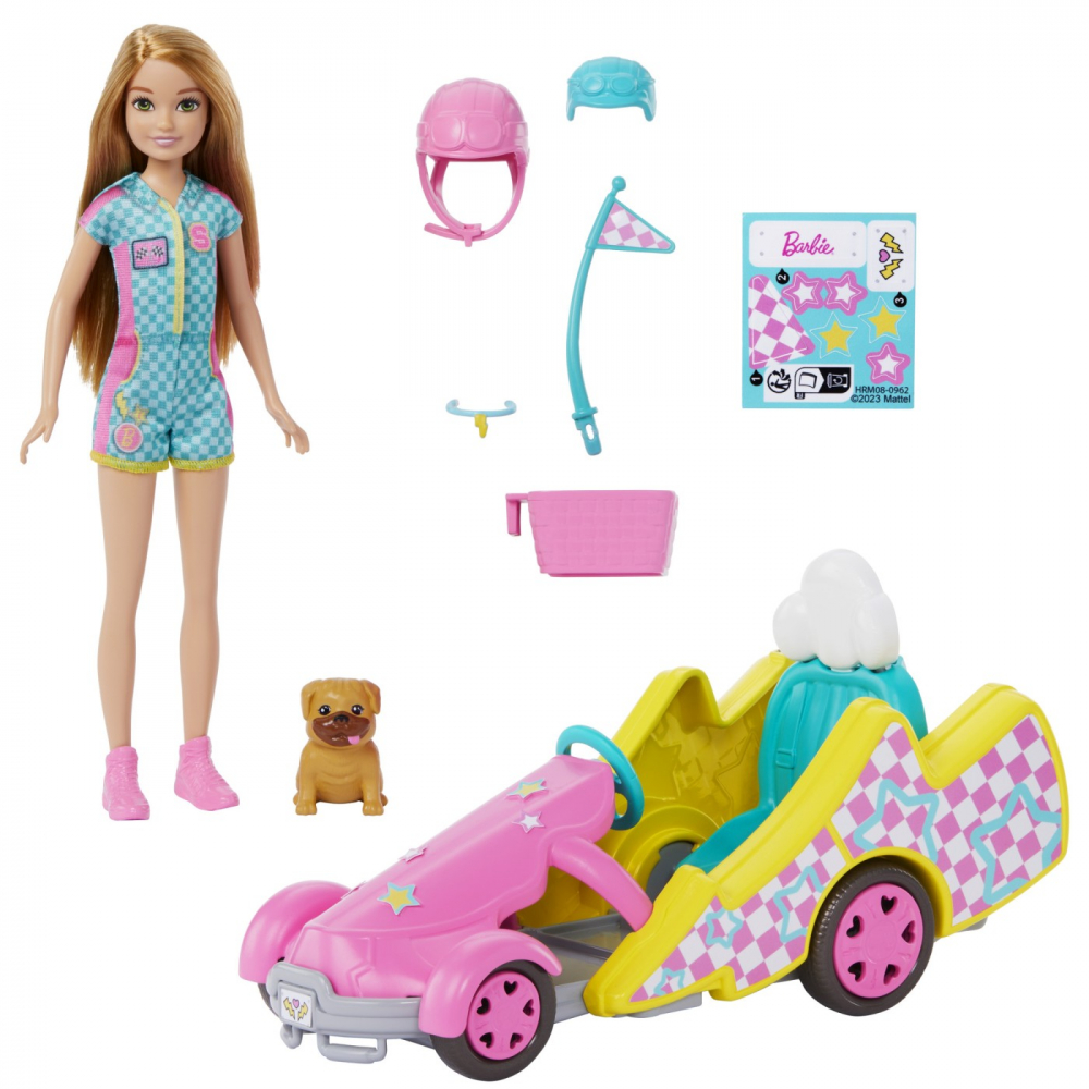 Alimentata de aventura, papusa Stacie este gata sa prinda un pic de viteza in tinuta ei de curse cu o casca roz asortata (exista si una pentru pasagerul ei pui)!