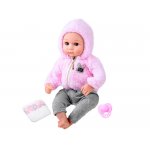 Papusica bebe pentru copii, Kiki Bebe, inchide ochii cand o asezi, burtica din material moale, accesorii incluse, inaltime 43 cm