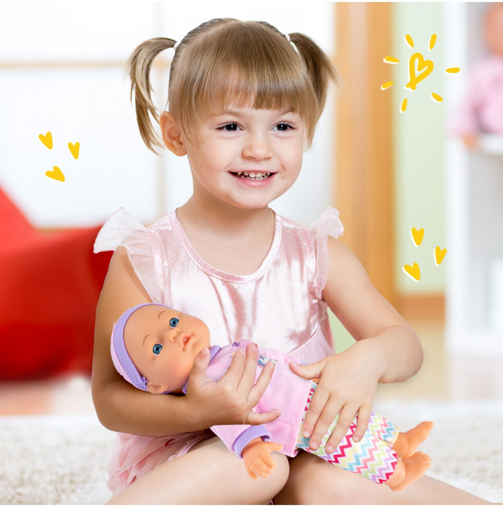 * Aceasta papusica este perfecta pentru micutii care isi doresc sa aiba grija de un bebelus! Imagineaza-ti cat de frumos ar fi sa-i dai biberonul, sa o imbraci in cainutele roz si sa il culci in patut.