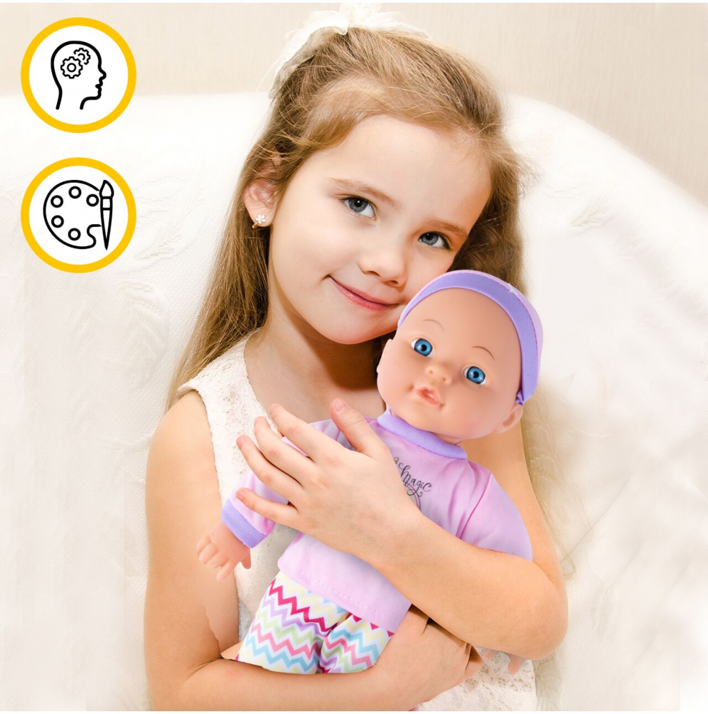 - Sa-si dezvolte abilitatile motorii: Schimband hainele papusii si dandu-i biberonul, isi va imbunatati coordonarea mana-ochi.