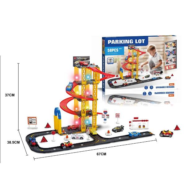 Parcare supraetajata cu lumini, sunete si 4 vehicule cu roti libere.
